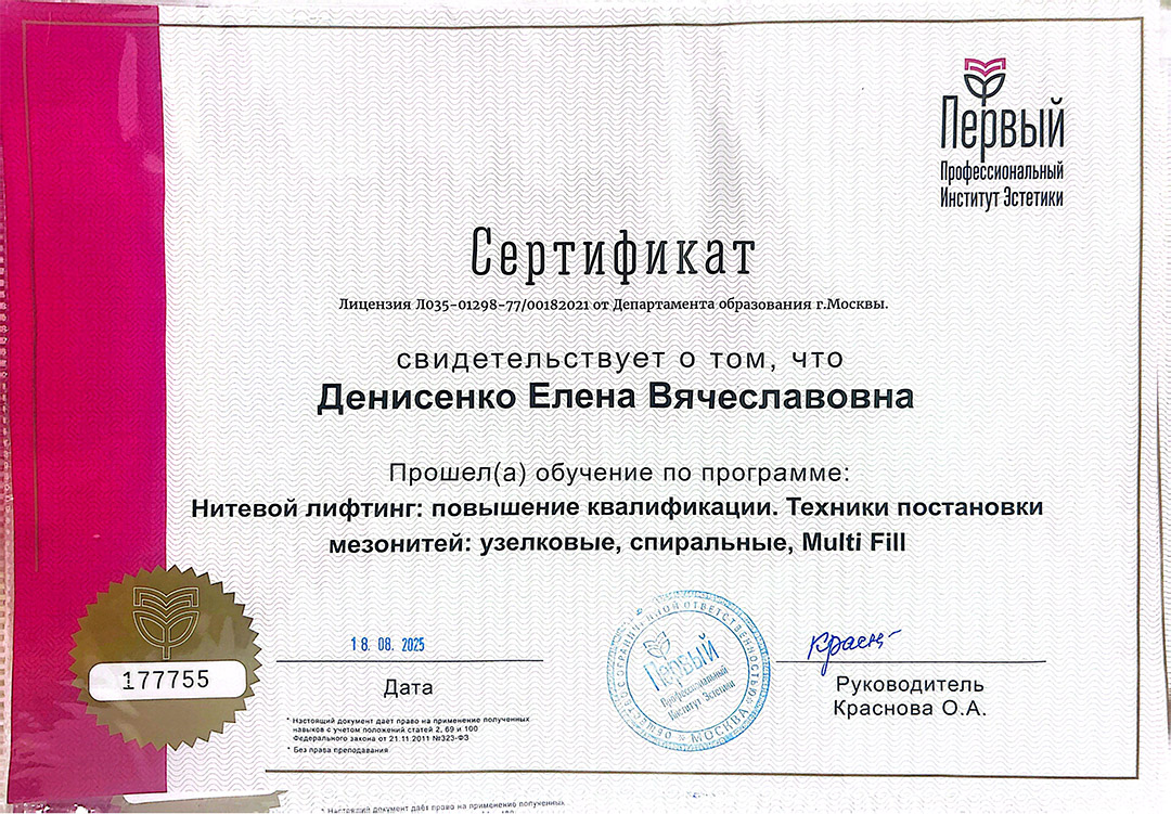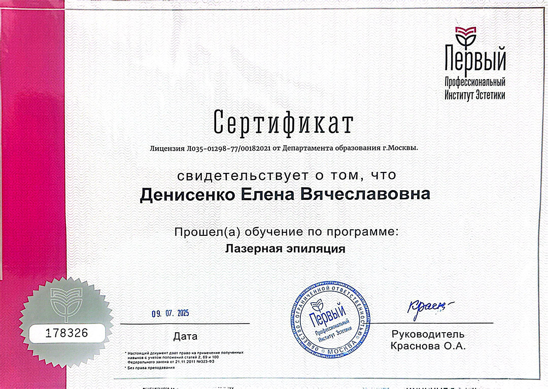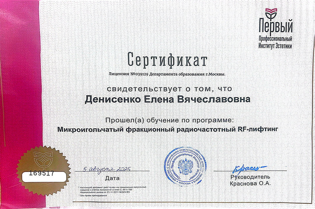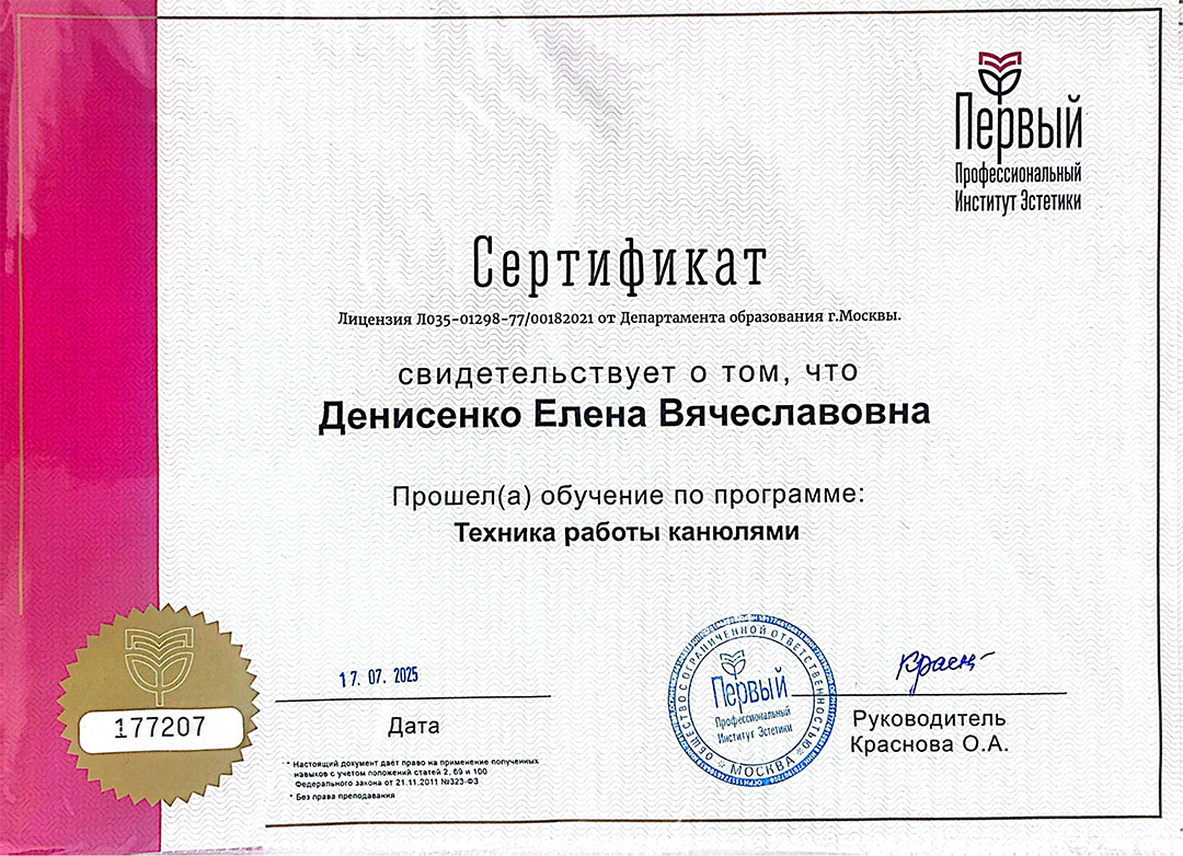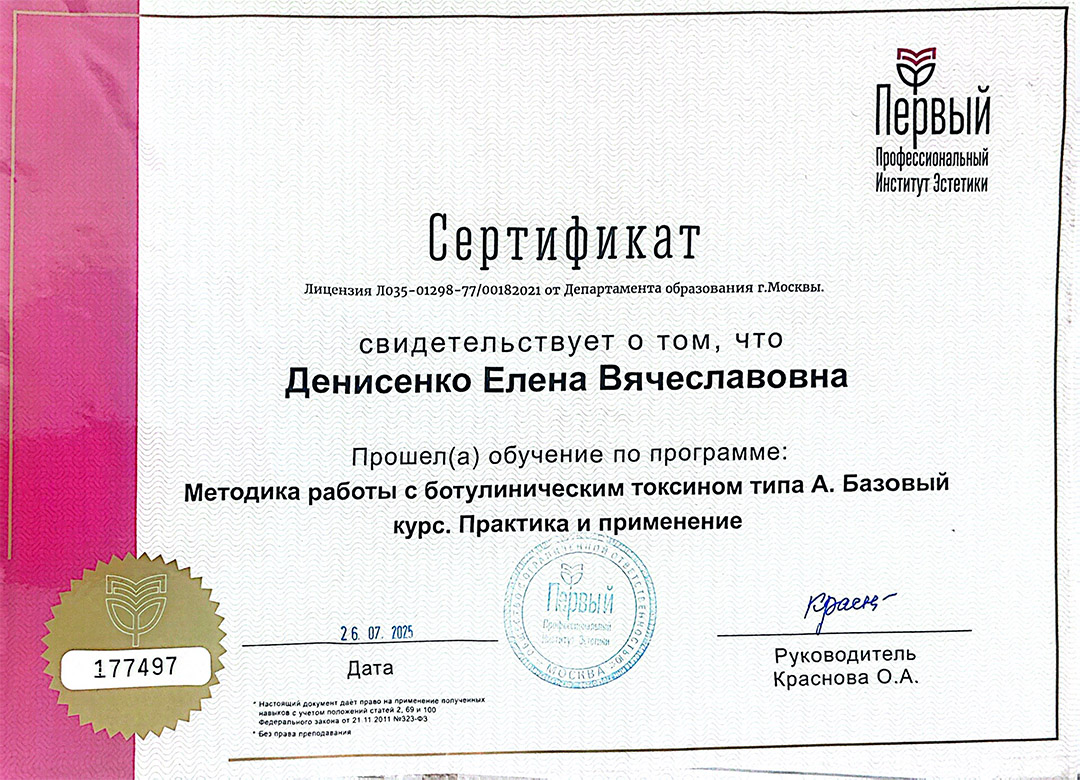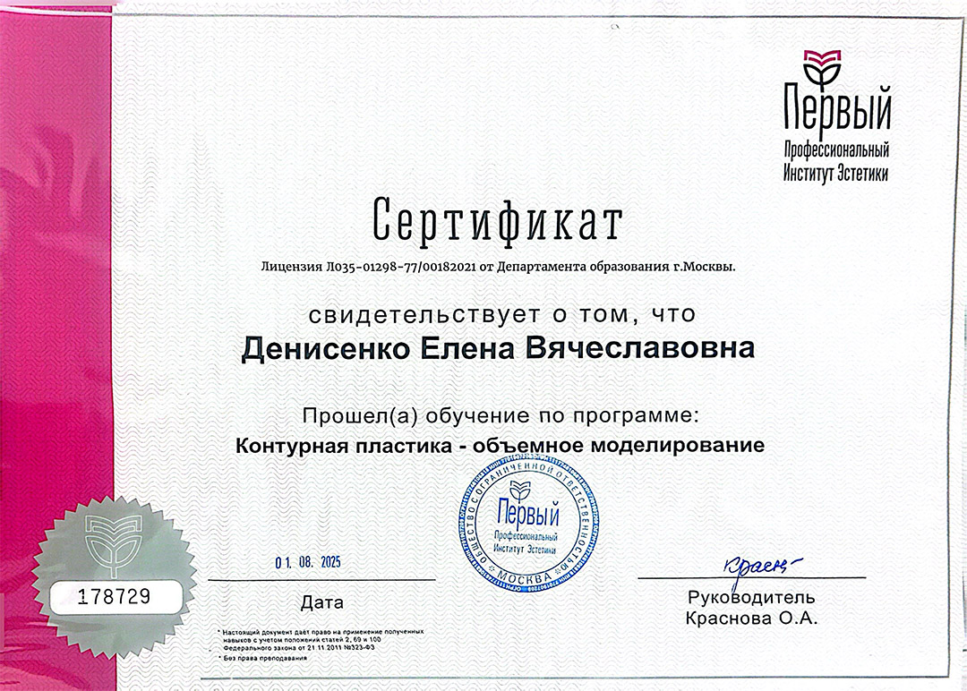 Обучение в ППИЭ, где овладела современными эстетическими, аппаратными и инъекционным технологиями